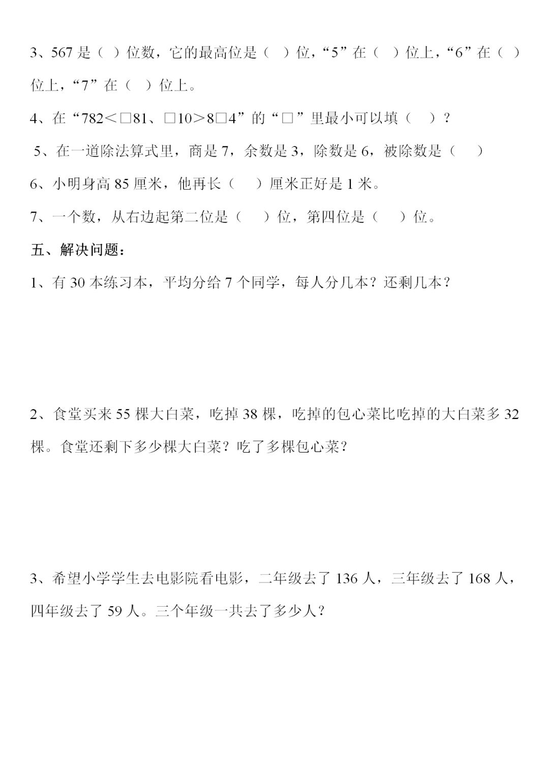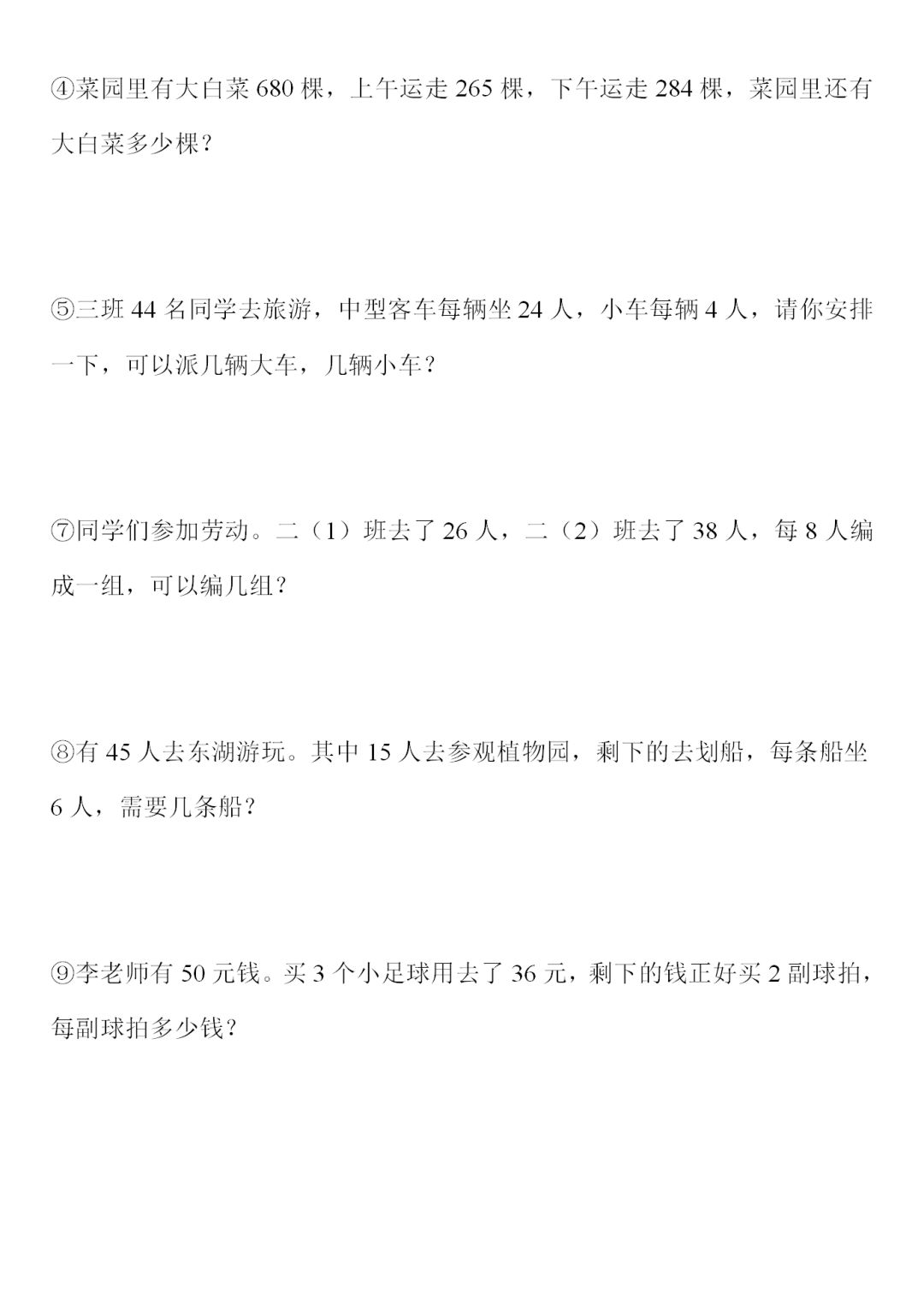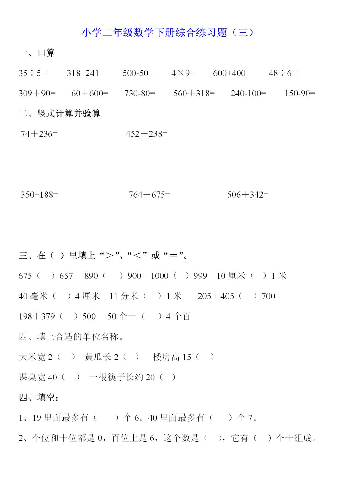 人教版二年级数学下册综合练习题9套,电子版可