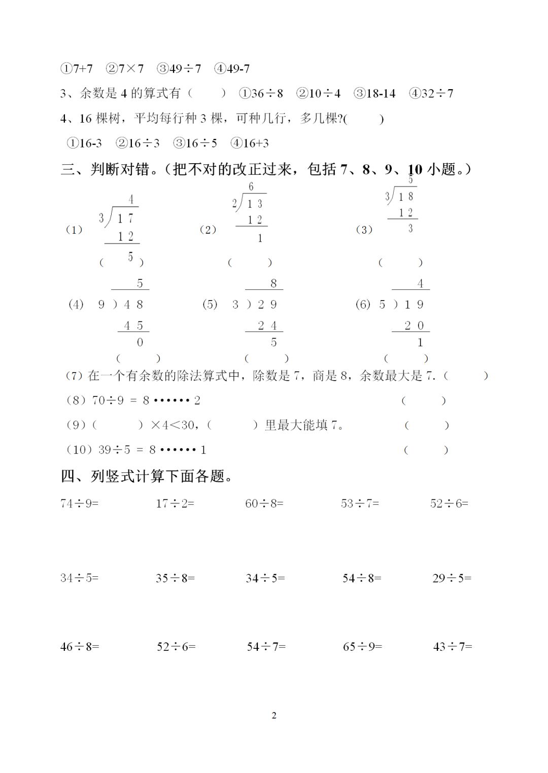 《有余数的除法》练习题