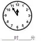 【问诊】本题出错原因主要有两种情况:1.观察钟面时将时针与分针混淆,误以为是12时;2.观察时针指向12,误以为已经到了12时,将钟面错读成12时55分。首先,观察钟面要细心,时针短分针长。其次,钟面上时针看似指向12,但由于分针指向11,所以没有到12时整。可以用大约12时,快到12时了,12时少5分表示,所以应读作11时55分。