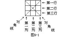 请把1~9九个数字填入图9—5中,要求每行、每列和每条对角线上三个数的和都要等于15.