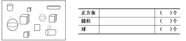 分别按水果种类和卡片形状分一分,并用自己喜欢的方式表示出来,在填空。