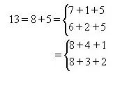 :①要使每边三张卡片上的数相加之和等于13时,就要将13分拆成三个数之和.