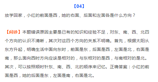 【问诊】对万以内数的顺序不熟练,对十进制计数法没有正确而完整的认识。第一题,从980,985,990这三个数可见是5个5个地数,990再添5个,可以看个位增加5是995,个位再增加5是10,满十进1,十位9添上进的1又满十,再进1,百位同理进到位,所以是1000,正确答案是995,1000,1005。第二题可见10个10个数,3010减少10个为3000,3000减少10个,十位与百位为0,从千位隔位退位为2990,正确答案是3000,2990,2980。