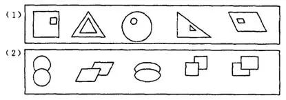 8.(1)提示:图中的几何图形的共同特点是在图形内部都有一个同一类型的图形.但1、3、4、5内部的图形都较小,只有2内部图形较大,且位置和其它几个图形不同.
