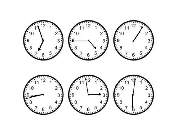 3.钟面上有(2)根针,短粗一点的针叫(时)针,细长一点的针叫(分)针。分针走1小格是(1)分,走1大格是(5)分,时针走1大格是(1)时。分针从12走到6,走了(30)分;时针从12走到6,走了(6)小时;时针从12开始绕了一圈,又走回了12,走了(12)时。