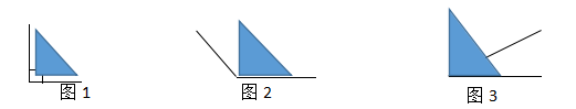 2、判断直角、钝角、锐角的方法:用三角尺上的直角比一比,也就是顶点对顶点,一边对一边,看另一边,①另一边如果与直角的另一边重合就是直角(图1);②另一边如果在直角另一边的外面,就是钝角(图2);③另一边如果在直角另一边的里面,就是锐角(图3)。