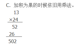 错因分析:乘法竖式计算的知识点没掌握,乘法的意义理解的不透彻。24个13连加,先算4个13是多少(52),再算20个13是多少(260),所以是两部分加起来的结果(52+260=312)。