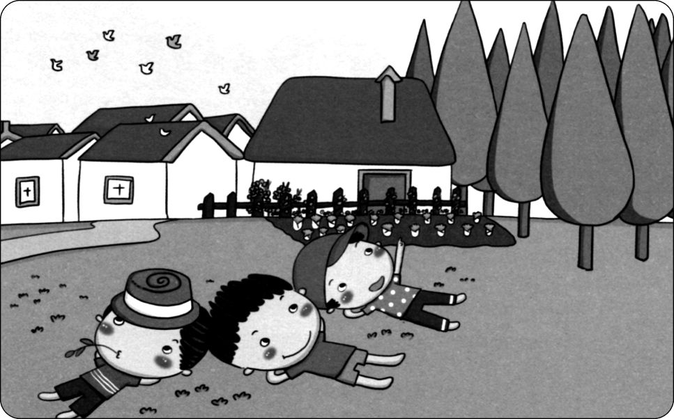 放学后,我和小刚、小亮约好去屋后的大草地上玩捉迷藏。不一会儿,我们已经满头大汗了,累得躺在草地上。“哇!太舒服啦!跟我家毛毯一样,软软的、香香的。”小刚开心地说。