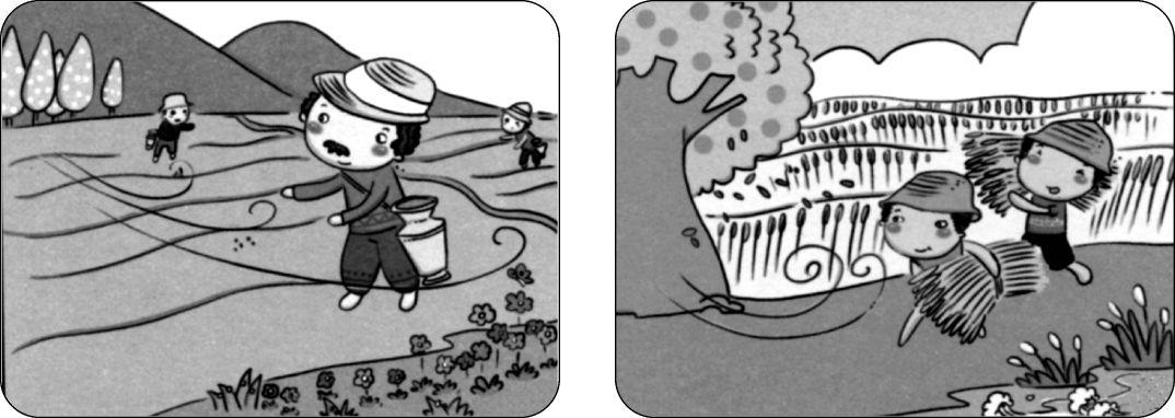 秋天到了,绿绿的稻田变成了一片金黄,农民伯伯又在田里忙着收割、搬运。他们把所有的稻谷变成珍贵的粮食,他们脸上满是丰收的喜悦。