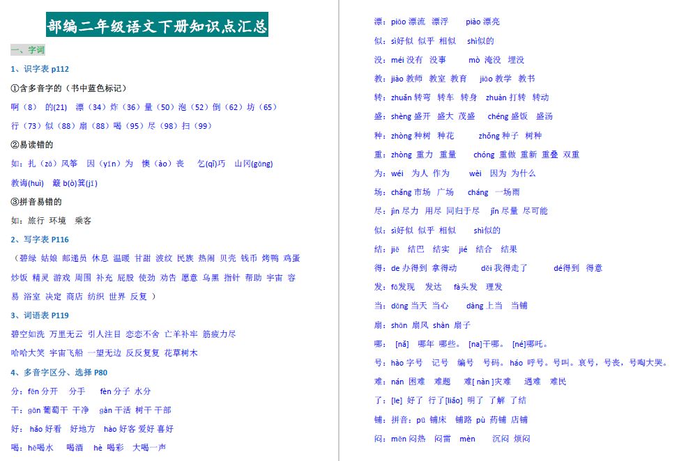 ①含多音字的(书中蓝色标记)